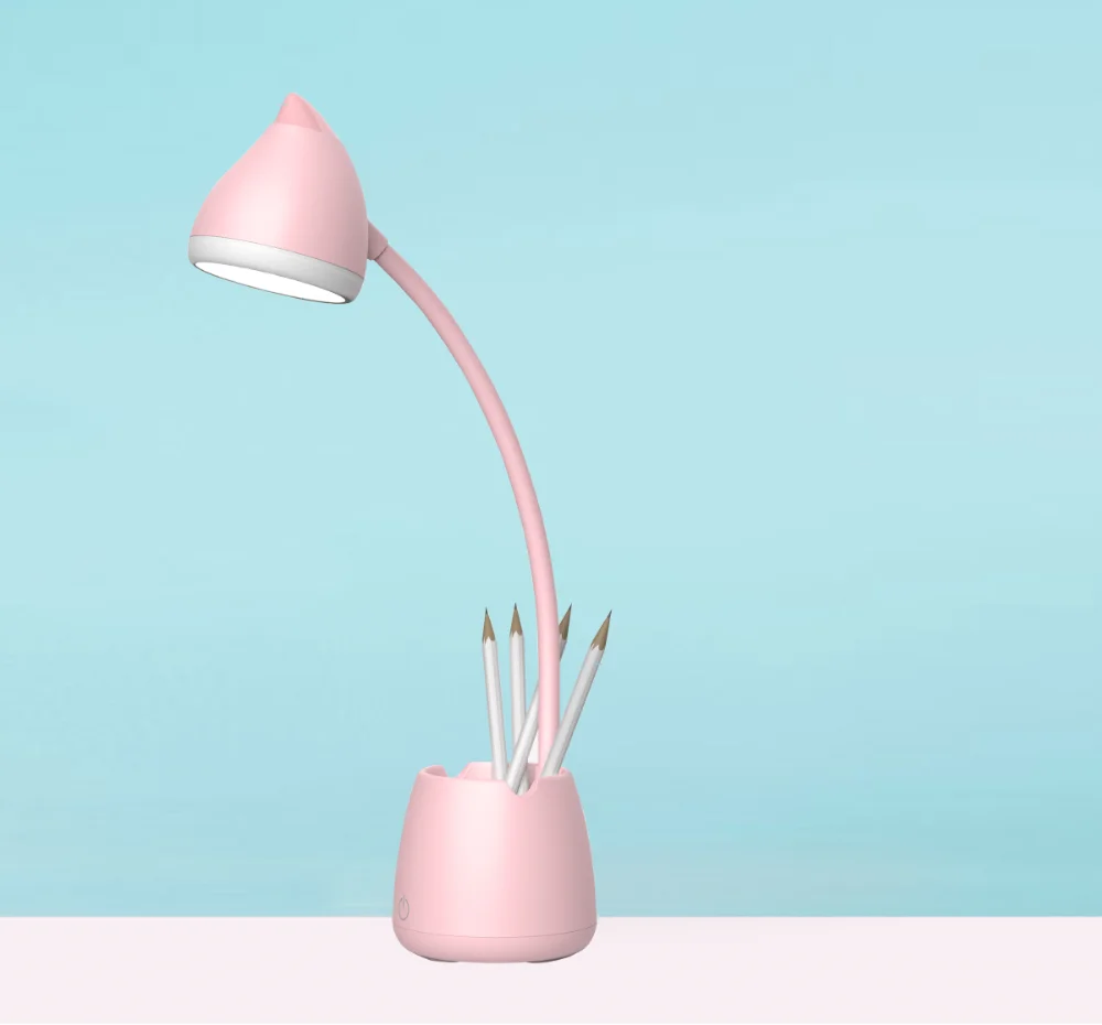 LED Small Desk Lamp, Desk Light for Kids, Desktop Study Lamps with Pen Holder and Phone Holder